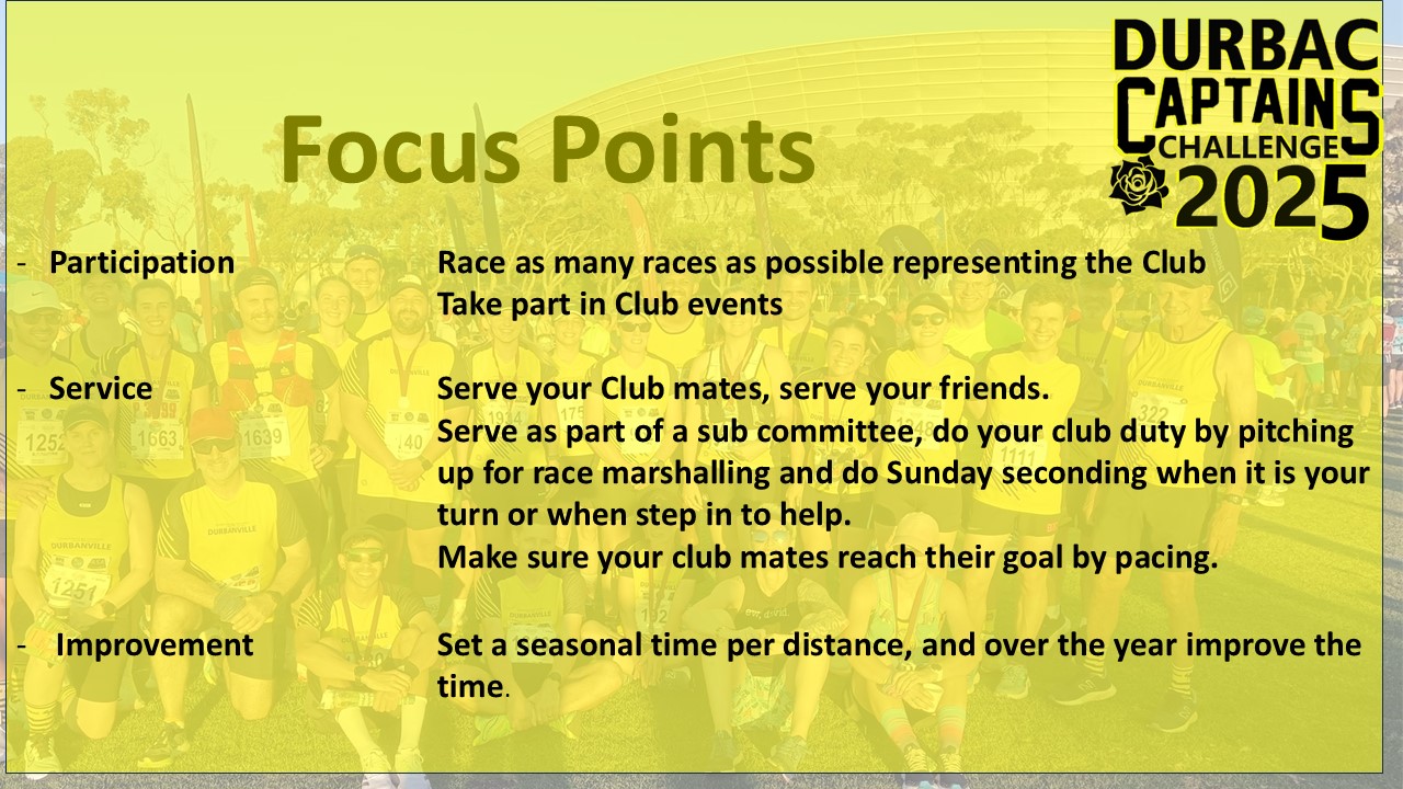 *Sunday runs are long distance (20km – 30km). Distances vary from week to week. Look out for the weekly updated regarding the organised Sunday run on the Durbanville Athletics Club Facebook page. There is a R20 fee for seconding every +/- 4km.
